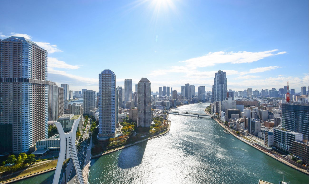 リバーシティ21 イーストタワーズは東京都中央区佃に所在する超高層住宅を中心としたウォーターフロント住宅エリアです。東京駅や銀座エリアから約2kmと都心に近く、衣食住の施設が揃った高い利便性を備え、川沿いの遊歩道からは四季折々の隅田川の景色とともに東京スカイツリーが一望できます。