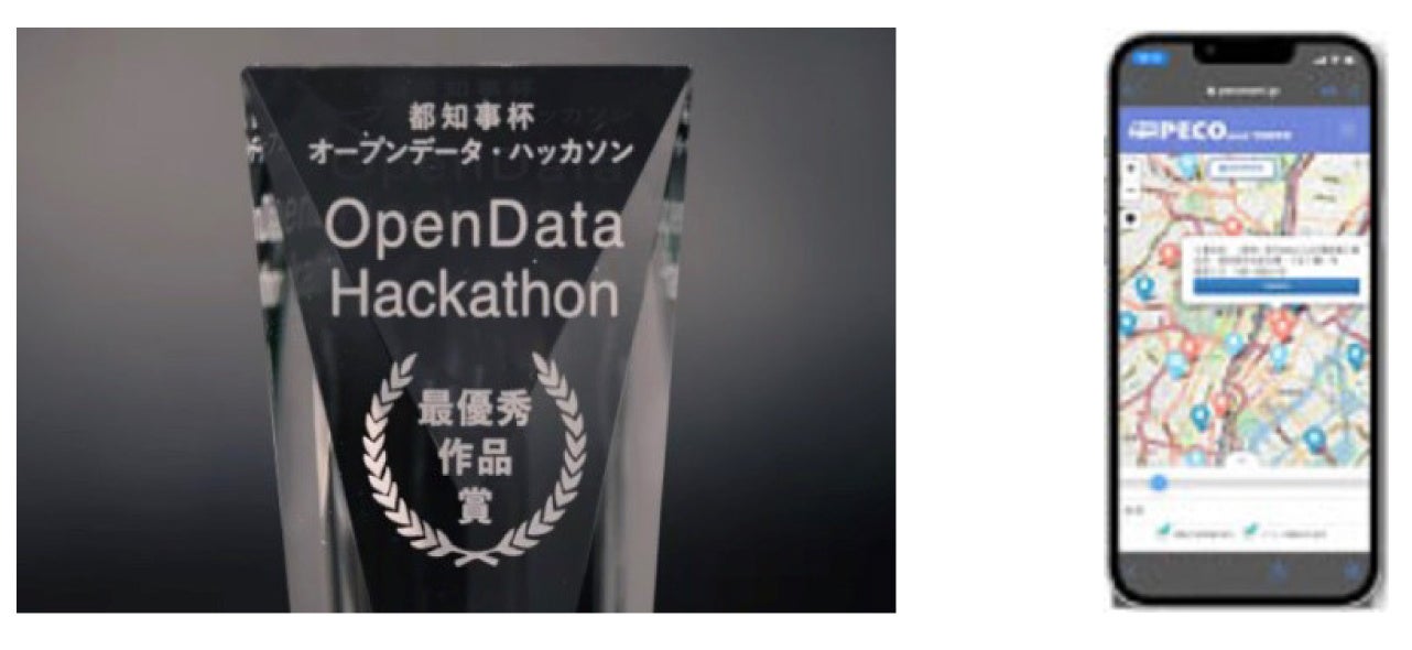 同チームは、2021年12月から2022年1月にかけて開催された「都知事杯オープンデータ・ハッカソン」に参加し、最優秀作品賞に選定されています。