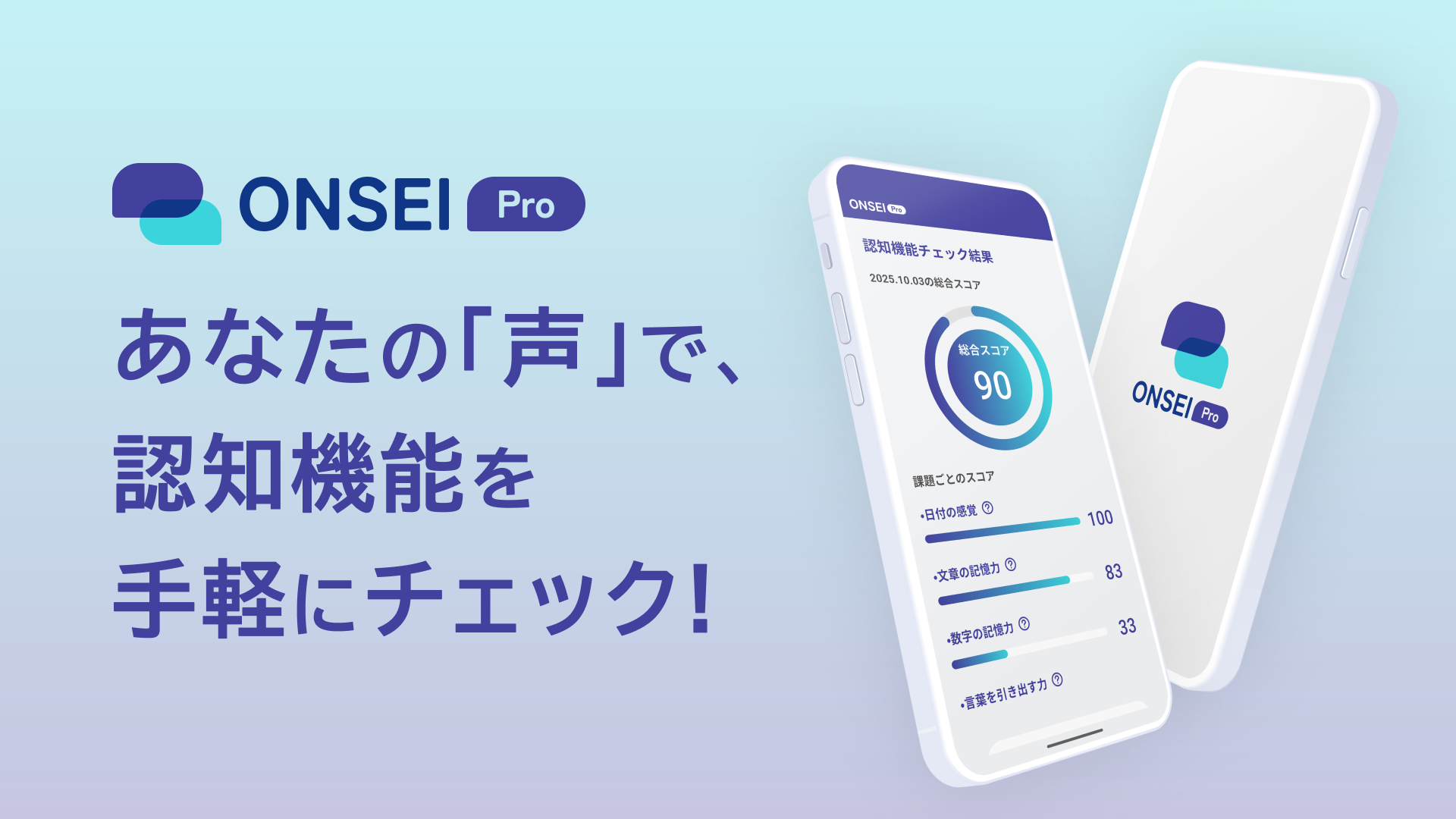 声で認知機能の状態を可視化する、新サービス「ONSEI Pro」提供開始|AMED支援事業・大学との共同研究から誕生した「脳の健康チェック」の新習慣