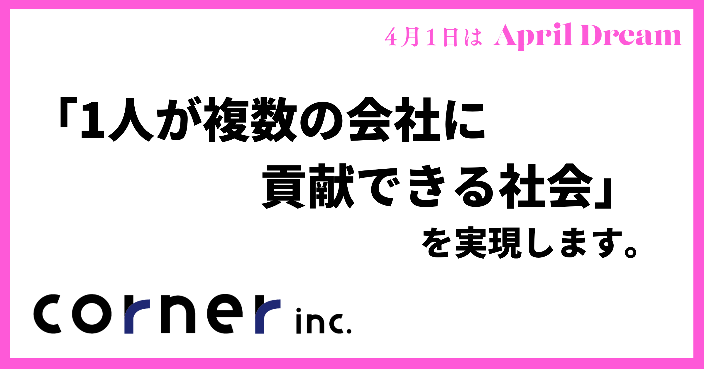 当社は、4月1日を夢を発信する日にしようとするApril Dreamに賛同しています。このプレスリリースは「株式会社コーナー」の夢です。
