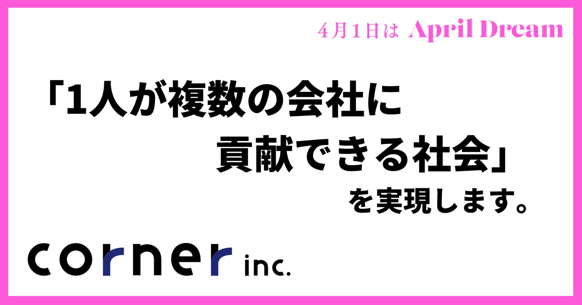 cornerは「1人が複数の会社に貢献できる社会」を実現します。