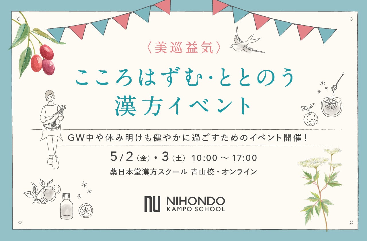 スギホールディングス株式会社の子会社である薬日本堂株式会社(本社:東京都千代田区 代表取締役社長 山本雅枝)は、「こころはずむ・ととのう 漢方イベント -美巡益気-」を2025年5月2日(金)、3日(土)の2日間に開催いたします。