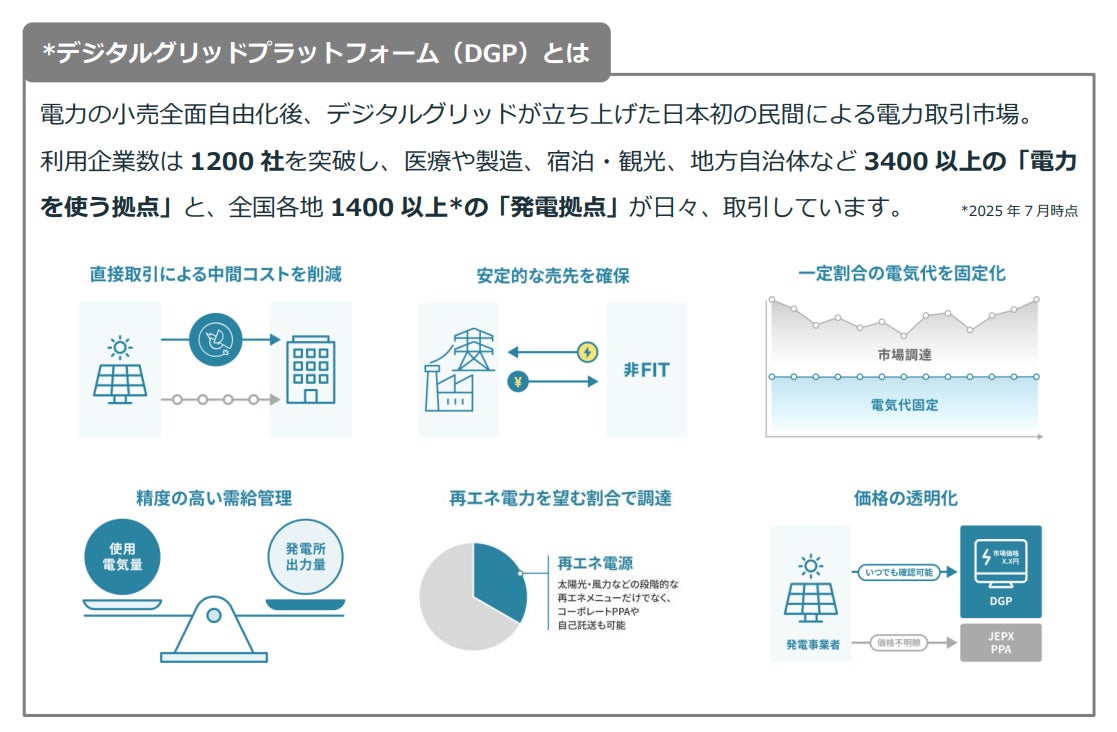 事業内容:電力及び環境価値取引プラットフォーム「DGP」運営、分散型電源アグリゲーションサービスの提供