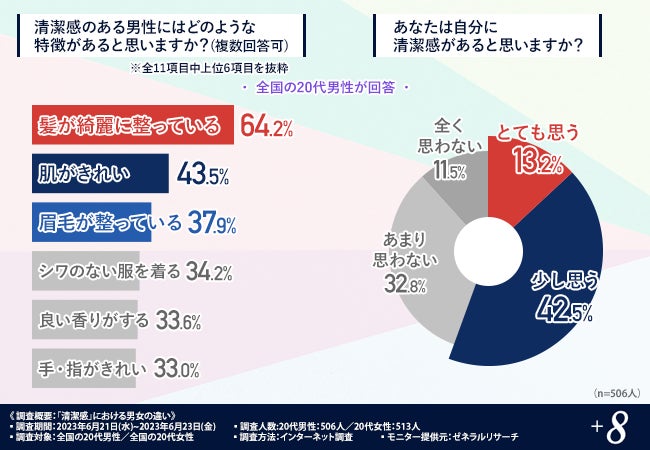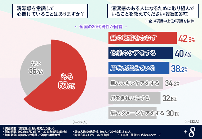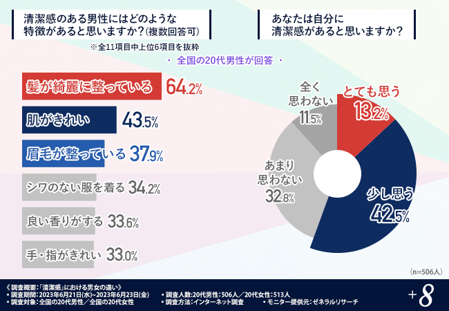 そこで今回、メンズ眉毛サロン「プラスエイト」を運営する株式会社プラスエイト(https://www.plus8.bz/)は、全国の20代の男女を対象に「清潔感」について男女の違いに関する調査を実施しました。