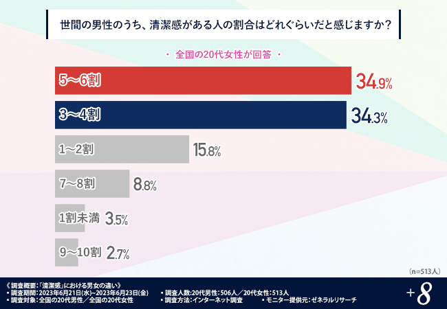 続いて、清潔感がある男性の割合はどのくらいだと思っているのか伺ってまいります。