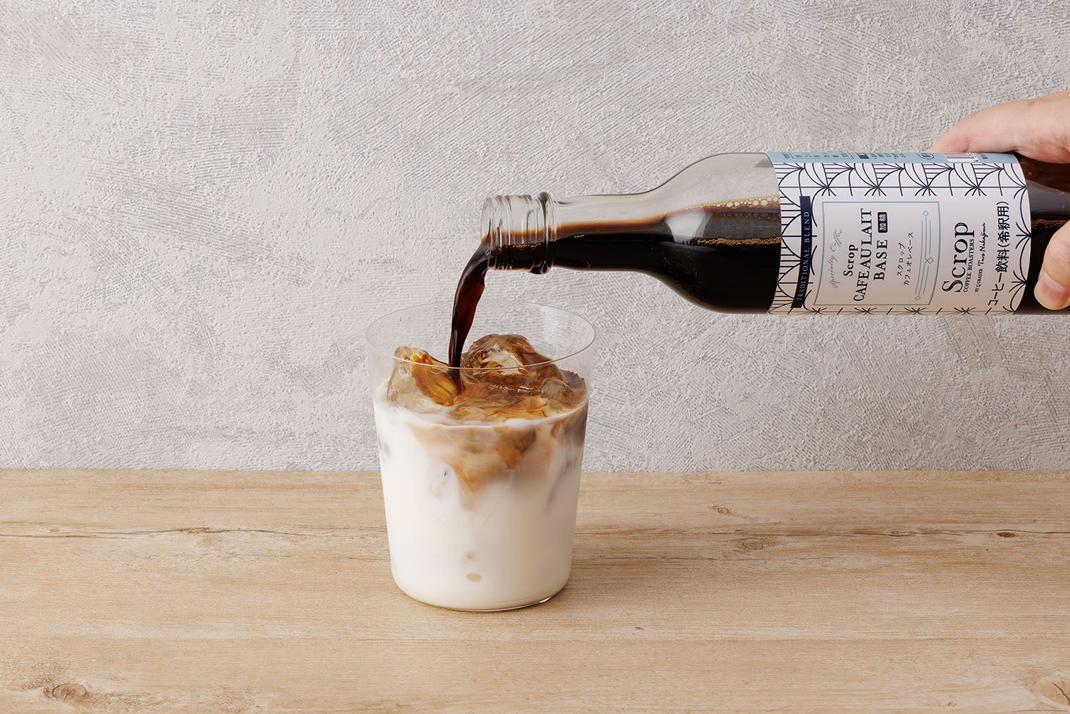 Scropオリジナルブレンド「トラディショナルブレンド」を使用したカフェオレベース(加糖)は、ミルクで割るだけで手軽に本格的な味わいをお楽しみいただけます。