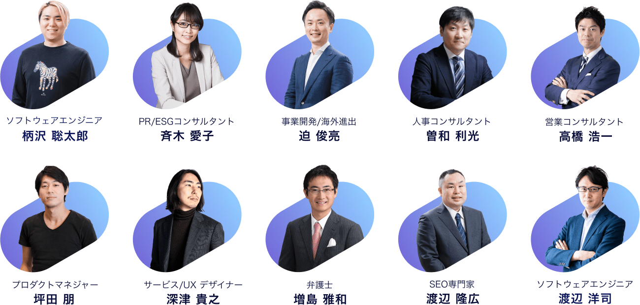マーケティング、デザイン、プロダクト開発、弁護士、人事、PRなど、スタートアップ企業の成長に必要不可欠な高度なスキルを有した専門家