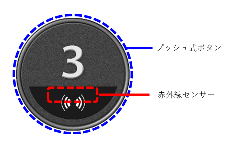 ✓ボタンから1~5cmの距離で赤外線センサーが反応