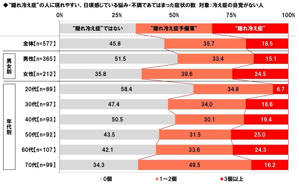 冷え症の自覚がない人では19%が“隠れ冷え症”、36%が“隠れ冷え症予備軍”と判明