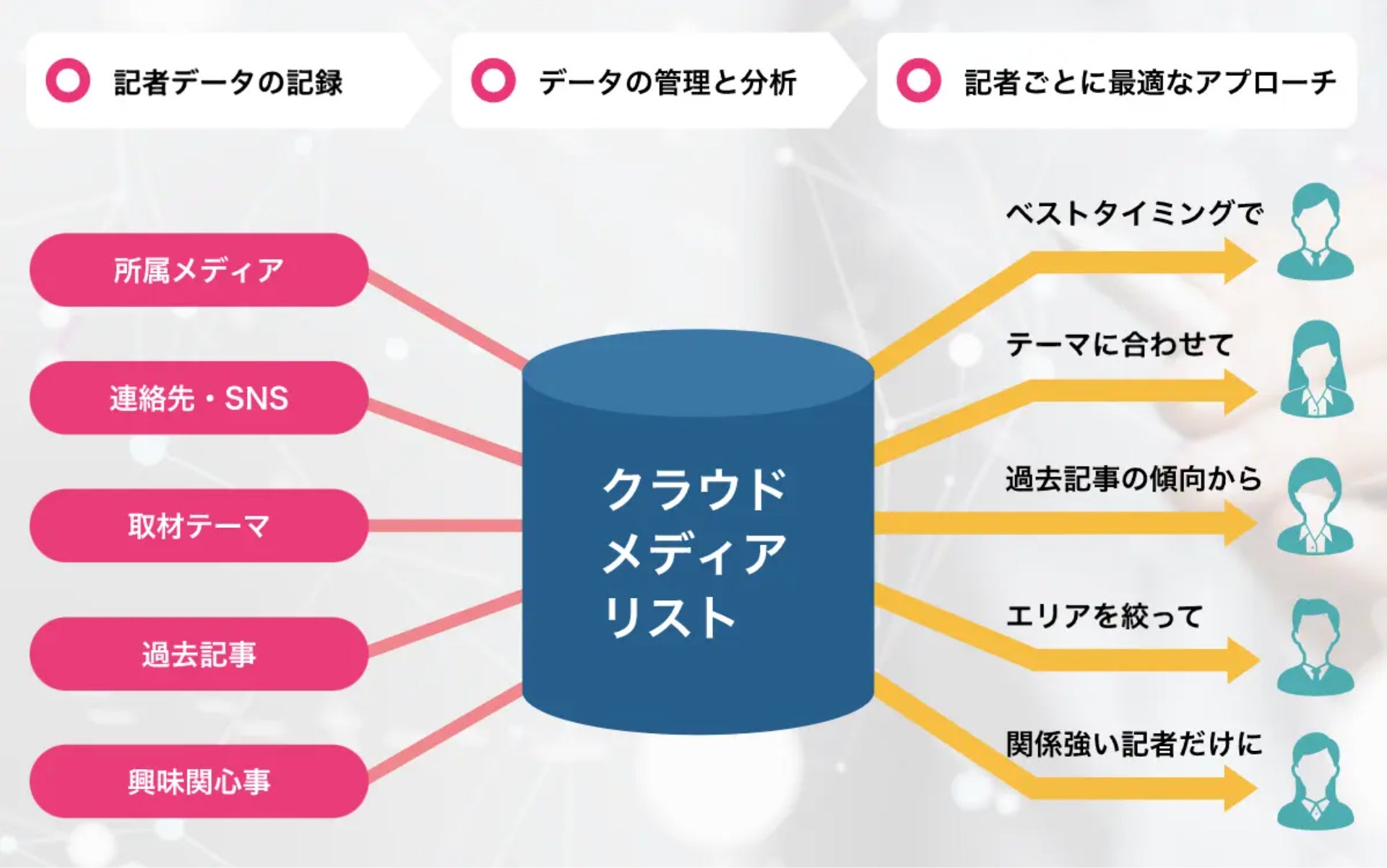 1. 記事ネタを探している記者に情報提供ができる
