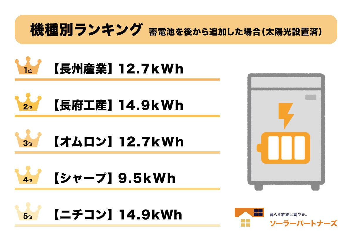 ただ、「大容量」人気は昨年以上の重要な要素となっているようで、昨年の上位3位の人気商品が「シャープ9.5kWh」「長州産業9.8kWh」「ニチコン9.9kWh」だったのに対し、今年は「長州産業12.7kWh」「長府工産14.9kWh」「オムロン12.7kWh」と更なる大容量化が進んでいる。