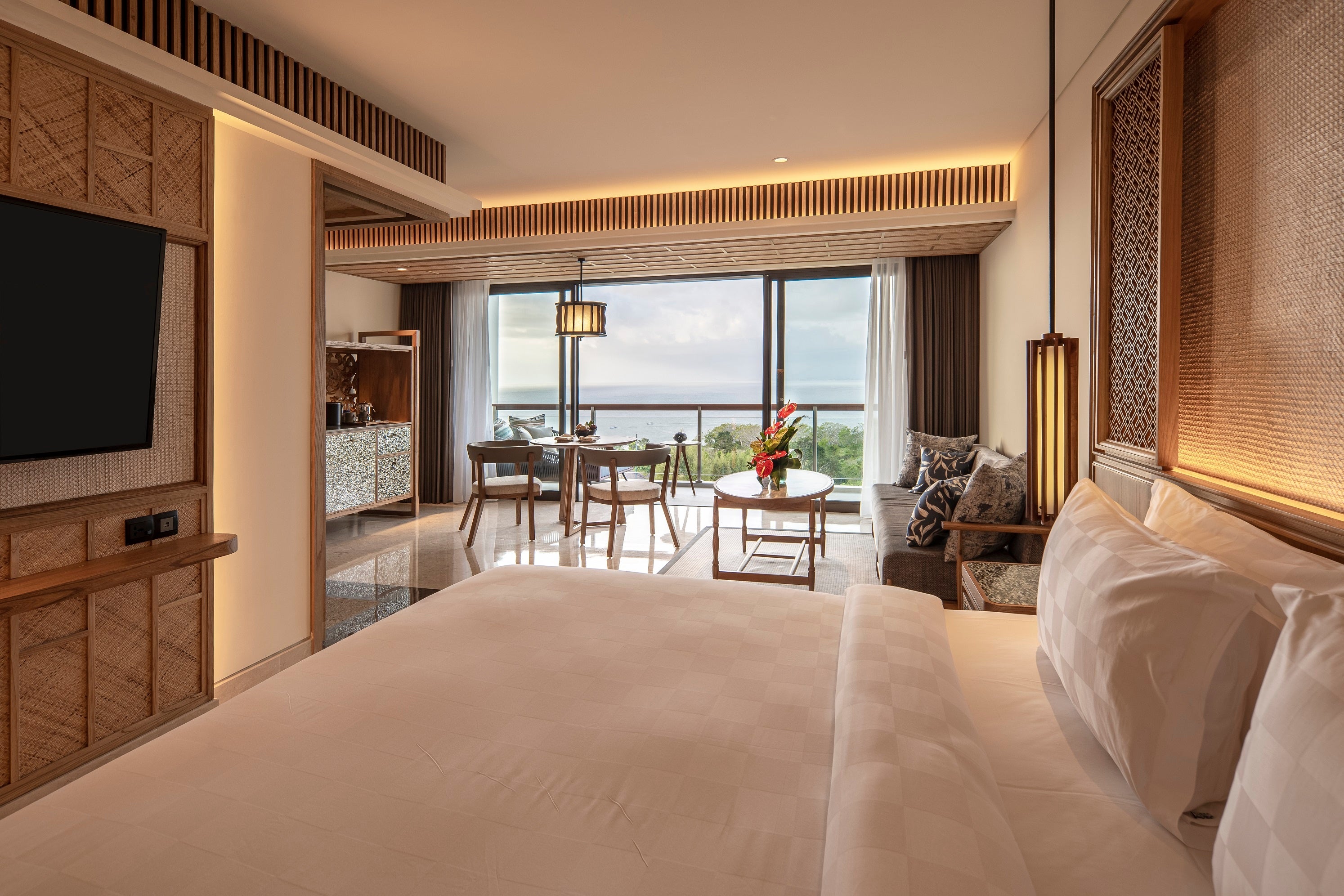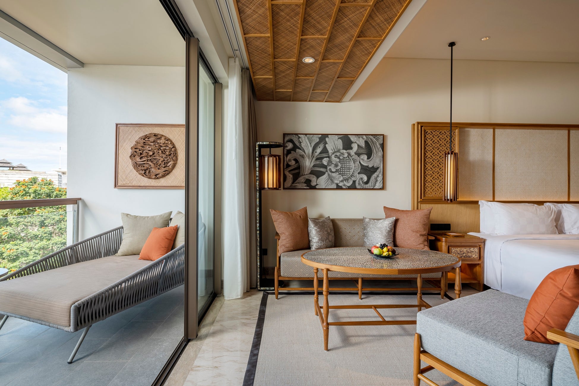 アヤナ セガラ バリには、205室のモダンでエレガントな客室とスイートがあります。客室の広さは58~65㎡で、スイートは約93㎡です。各部屋には、インド洋の涼しい風を感じられる床から天井まである大きな窓、景色を楽しむためのデイベッドを配したプライベートバルコニーまたはテラスが備わっています。地元の職人技を称える豊かな素材を取り入れつつもモダンなインテリアデザインの客室には、贅沢なリビングスペース、ダイニングエリア、広々としたウォークインクローゼットがあり、バスルームには、大きなフリースタンドのバスタブと大理石のレイン シャワーを完備しています。