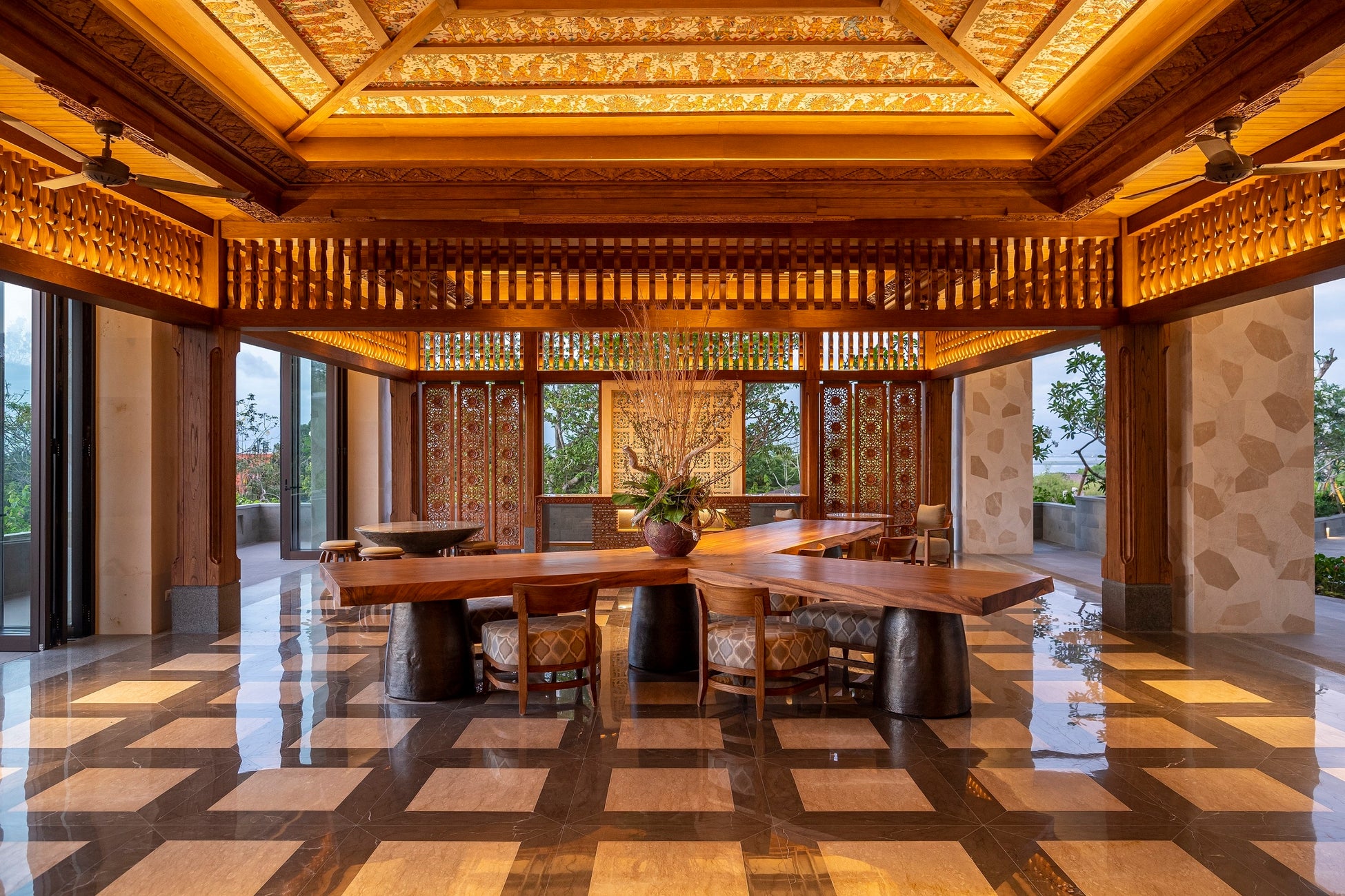 アヤナ セガラ バリは、バリ島とコモドのアヤナの各ホテルと同じく、数々の受賞歴を誇るデザイン事務所「WATG」によって設計され、シンプルでコンテンポラリーなデザインが特徴です。ホテルに一歩足を踏み入れると、バリの伝統的な文化にインスパイアされたインテリア デザインの空間がゲストの皆様をお迎えします。アヤナ セガラ バリの客室とレストランのインテリアは、ロックバーのデザイナーでもあるデザインスタジオSPINの小市泰弘氏が手掛けました。ホテルのロビーは、伝統的なバリのデザイン美学を取り入れた木彫りが施され、落ち着いた雰囲気の居心地の良いオアシスを作り出しています。バリ島のクルンクン村の伝統的な絵画であるカマサン様式の絵が天井に施され、バリの壮大なワヤンの世界をバーチャルに旅することができます。同じカマサン様式の絵は、アヤナ リゾート バリのロビーの天井にも描かれています。このバリのタッチが、アヤナ セガラ バリをアヤナの伝統的なバリ体験全体に結びつけ、モダンかつクラシックで優雅な隠れ家を提供します。