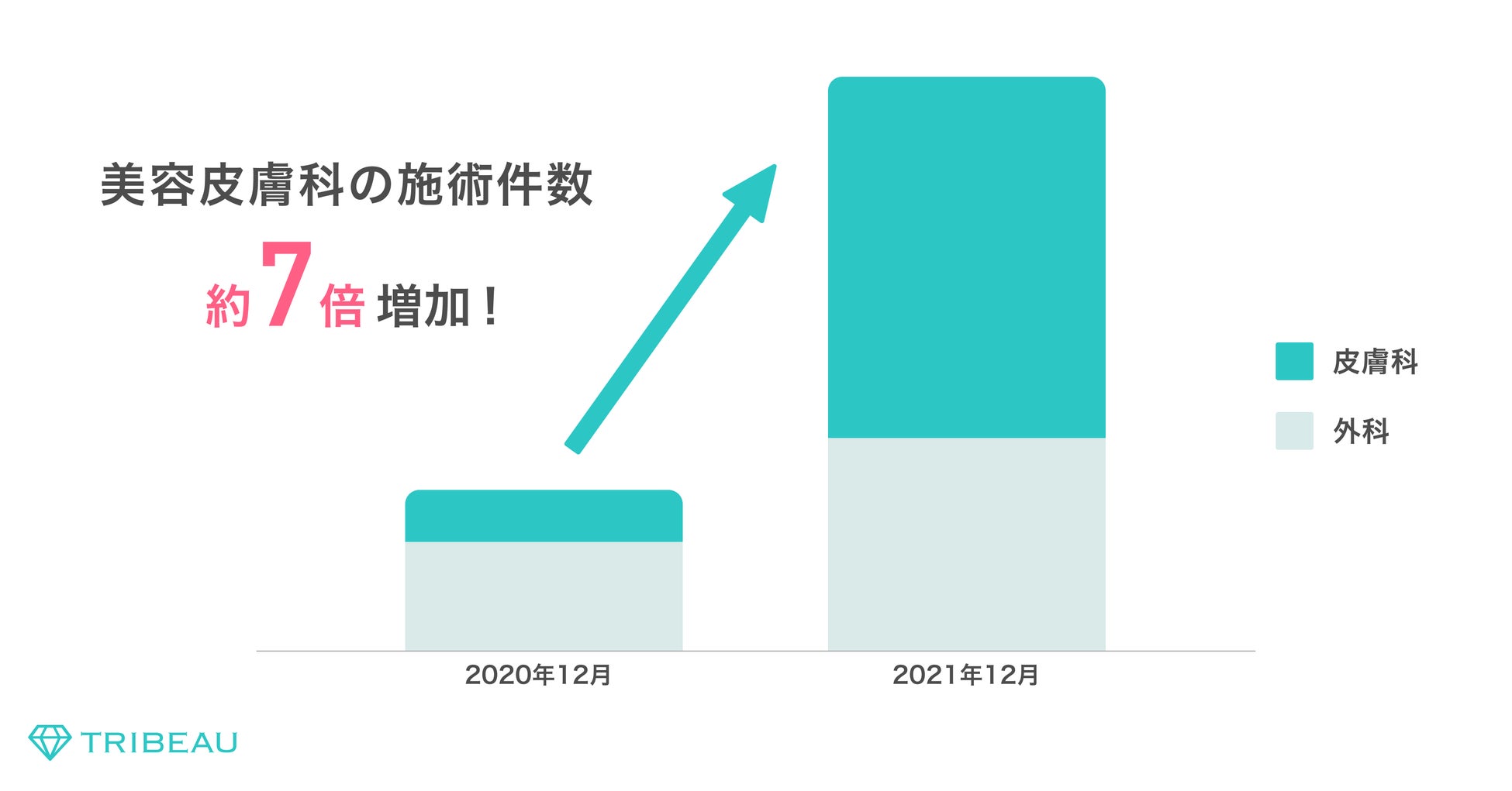 トリビューはこれまで主に美容外科領域でサービスを成長させてきましたが、昨年から美容皮膚科領域へも注力をしたことにより、この1年間で美容皮膚科の施術件数は約7倍にまで伸長しました。
