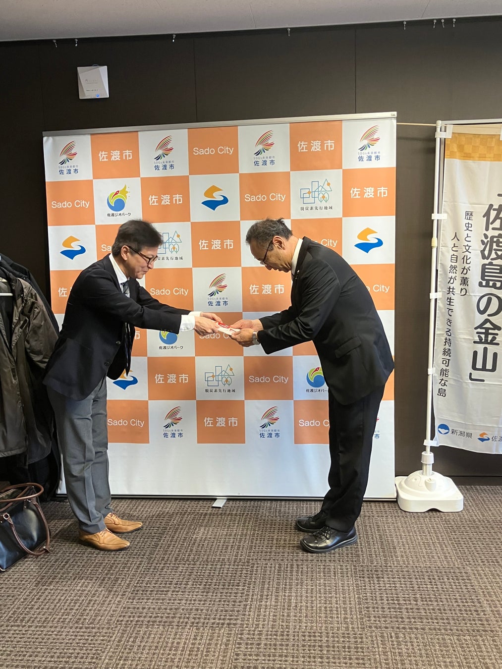 昨年、“佐渡島の金山”の世界文化遺産登録を記念して期間限定発売をした、「トッキッキ純金小判」の売上の一部を、「新潟県トキ保護募金」と「佐渡市世界遺産推進基金」に寄付いたしました。