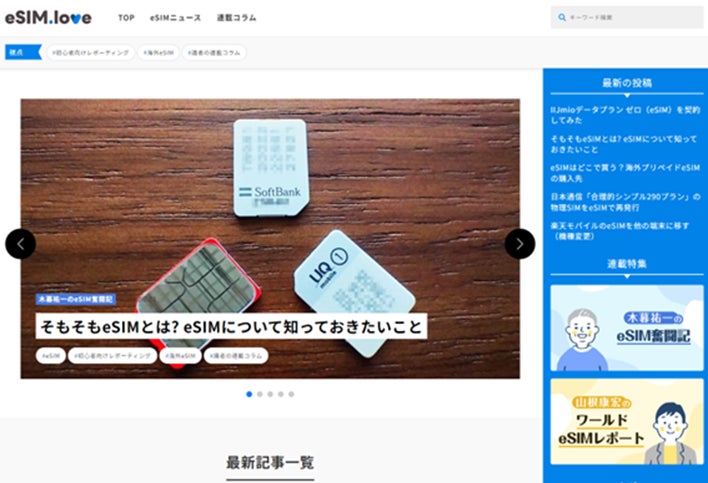 「eSIM.love」は、eSIMに関するニュース、新製品のレビュー、eSIM関連イベントの報告、使い方のコツ、有識者の連載コラムなど、幅広い情報を網羅的に発信するメディアです。当社およびモバイル研究家の木暮祐一氏、山根康宏氏の豊富な経験と専門知識を活かし、ユーザーの皆様がeSIMの恩恵を最大限に享受できるように情報提供を行ってまいります。