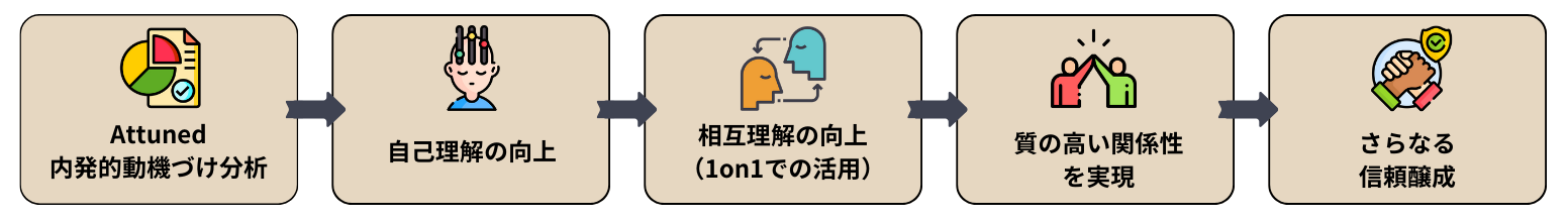 『Attuned』は、人の能力や行動、性格に比べて見えにくい【内発的動機づけ】への要求度と【組織文化】を可視化するアセスメントと分析、1on1コミュニケーション・離職防止などデータ活用に向けた人材育成サービスです。2021年には、HRテクノロジーアワード優秀賞とHRアワード優秀賞をダブル受賞。また、2024年に『心理的安全性評価アセスメント by Attuned』をリリースしました。