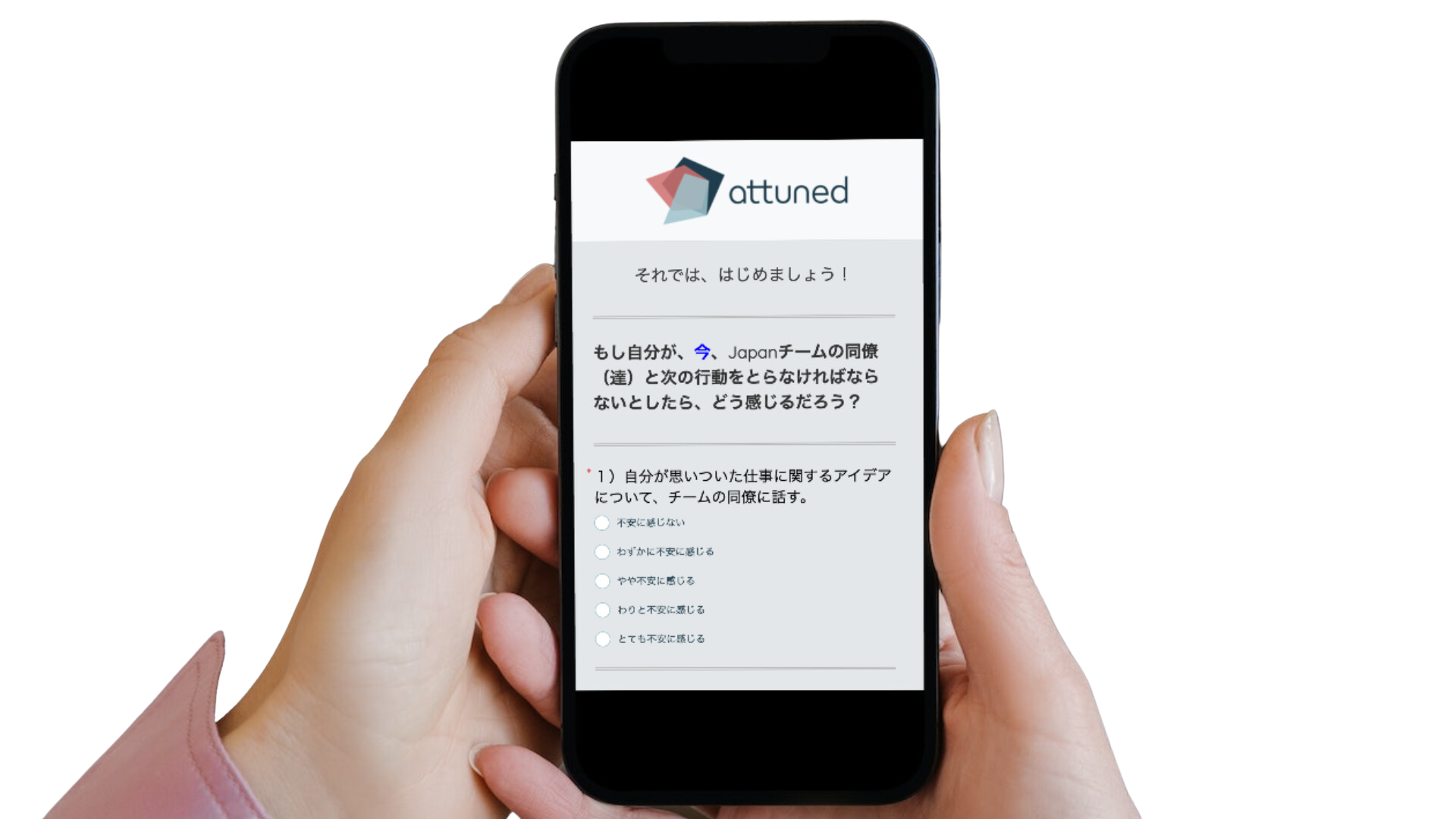 「心理的安全性評価アセスメント by Attuned」は、社員はスマホなどで10分程度のアセスメントに回答するだけで、正しいデータを収集・指標化し、改善に向けた指針が得られます。