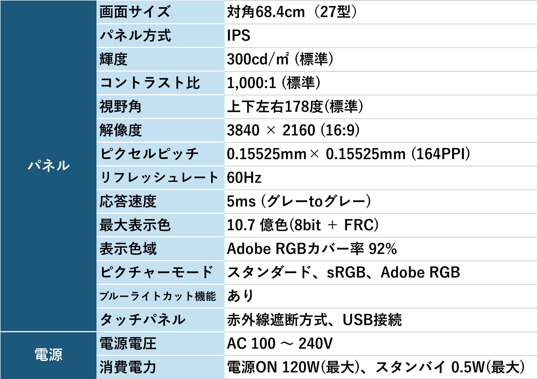 - 「27型4Kモニター+27型タッチフレーム」製品機能