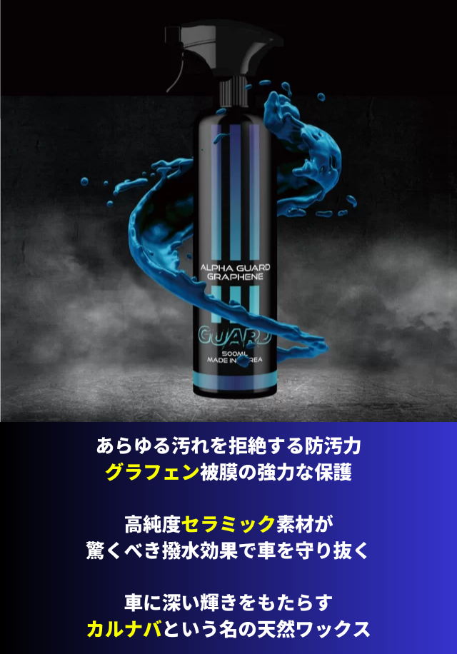 発売初日で500本以上を販売!グラフェンxセラミックxカルナバが融合した車用コーティング剤「アルファガードグラフェン」をMakuakeにて発売開始!【3種の夢の素材が融合】