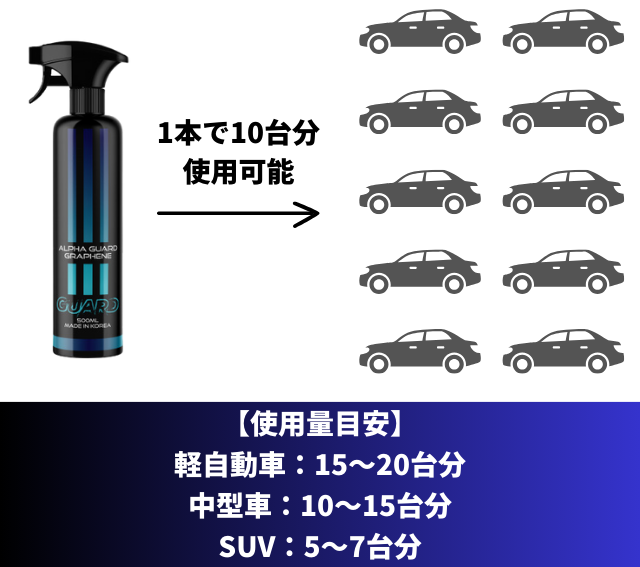 1本500mlの大容量で10台分以上のコーティングが可能です。