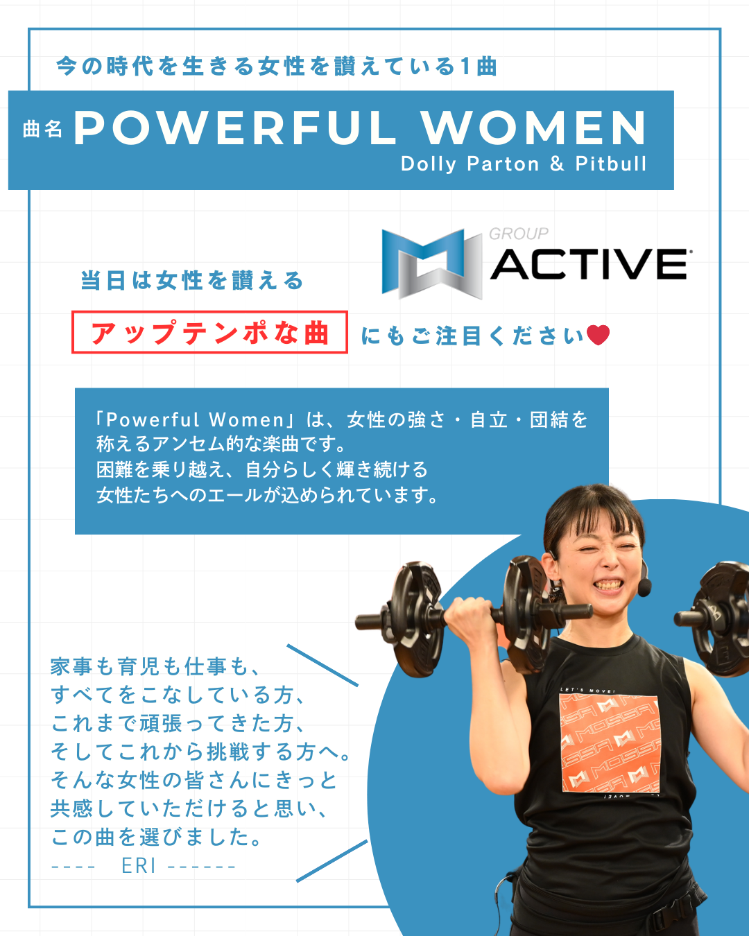 2026年は、フィットネスを通じて女性を讃え、その可能性を広げる機会を創出したいという想いから、特別レッスンを実施いたします。