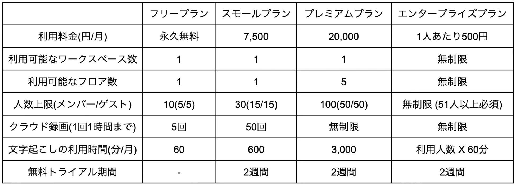 チームの規模と一部機能の利用可能上限に応じて、以下のプランを提供しております。