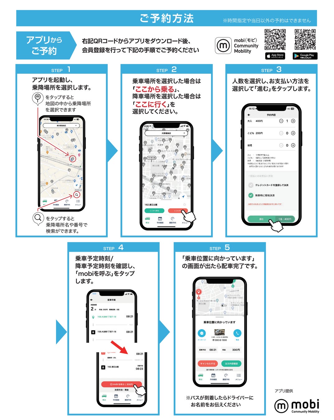 (1)運行形態 デマンド型運行(アプリまたは電話による予約制)