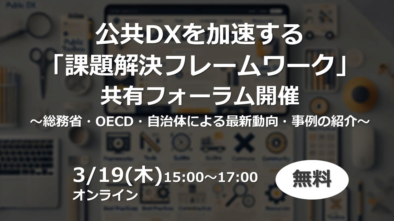 ぜひ多くの行政関係者の方々にご参加いただき、課題解決フレームワークの活用と普及に取り組む契機としていただければ幸いです。