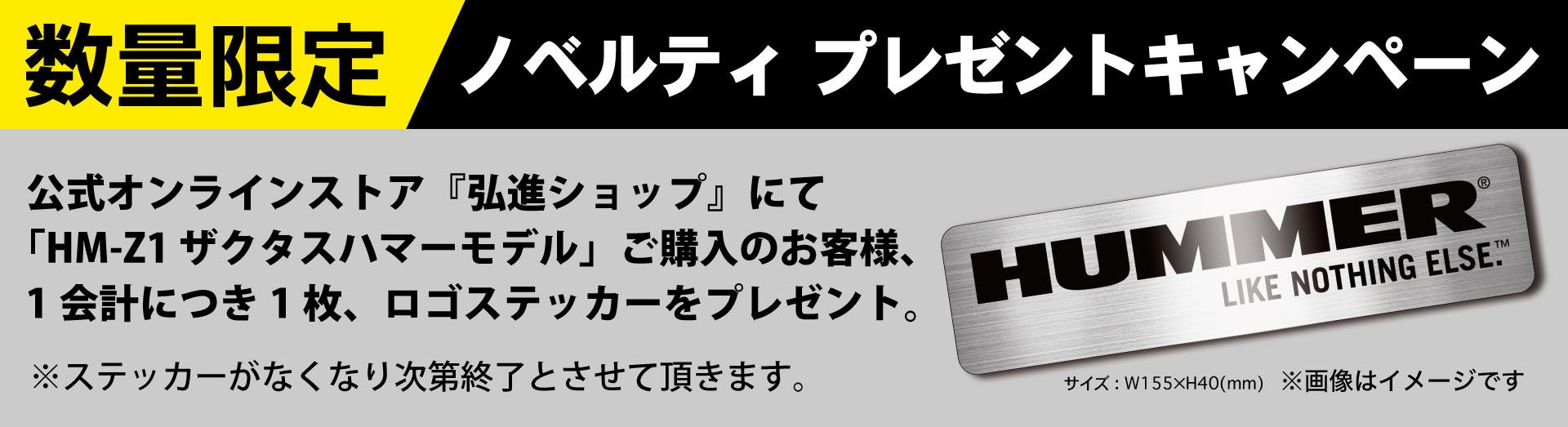 公式オンラインストアにて、「HM-Z1ザクタスハマーモデル」ご購入のお客様には、1会計につき1枚、ブランドロゴステッカーをプレゼントいたします。この機会にぜひご検討ください。
