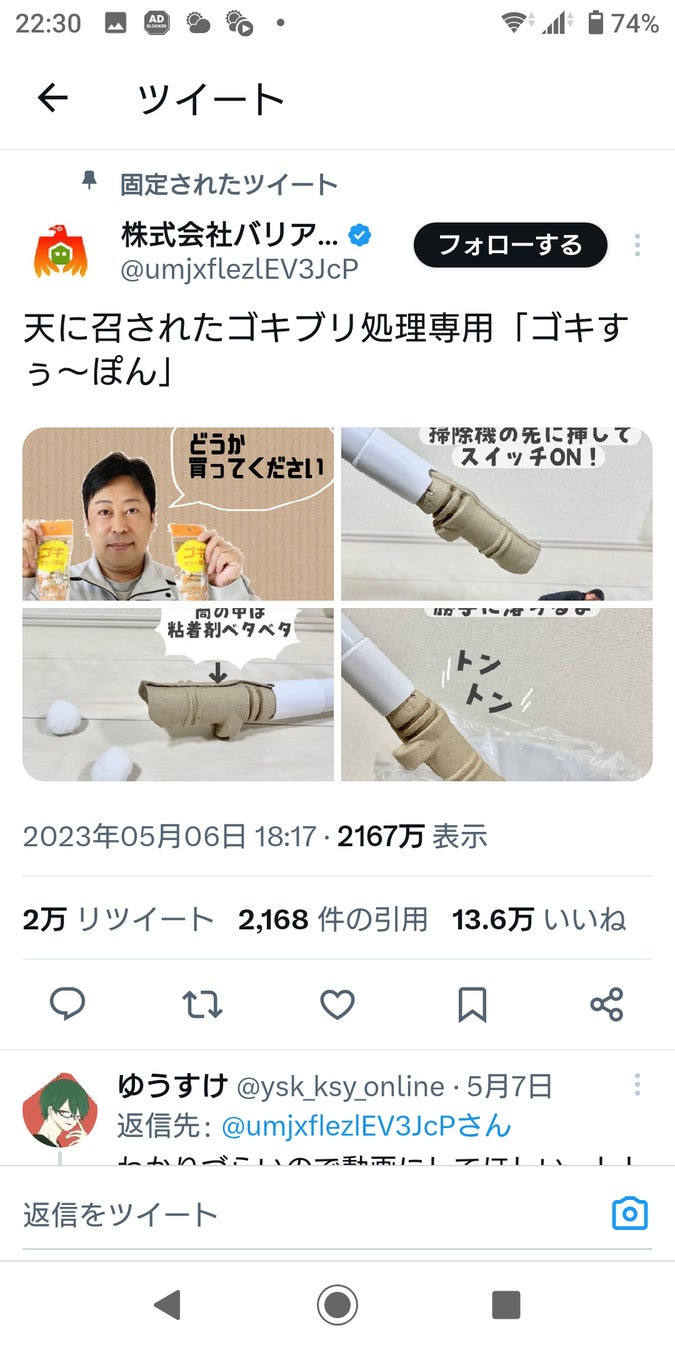 【Twitter】13万いいね!達成記念。天に召されたゴキブリ処理専用「ゴキすぅ~ぽん」を堺市役所様に100個提供させて頂きました!