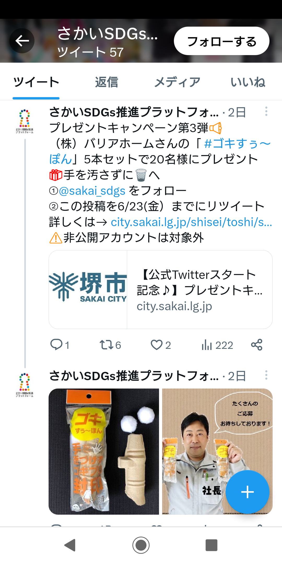 天に召されたゴキブリ処理専用「ゴキすぅ~ぽん」を堺市役所様が行っている、さかいSDGs推進プラットフォーム【公式Twitterスタート記念♪】プレゼントキャンペーン第3弾に100個ご提供させて頂きました。