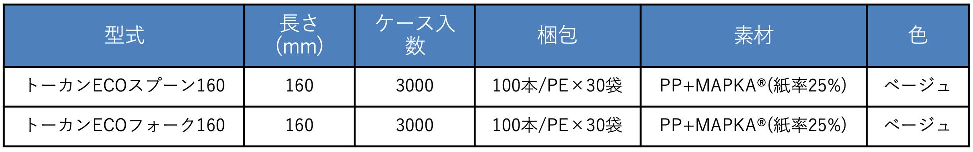 こうした背景から、東洋製罐グループでは、"プラスチック製品のリデュース”を促進するべく、「トーカンECOカトラリー」シリーズを開発。第一弾として、「トーカンECOスプーン」、「トーカンECOフォーク」を3月初旬より販売開始いたします。