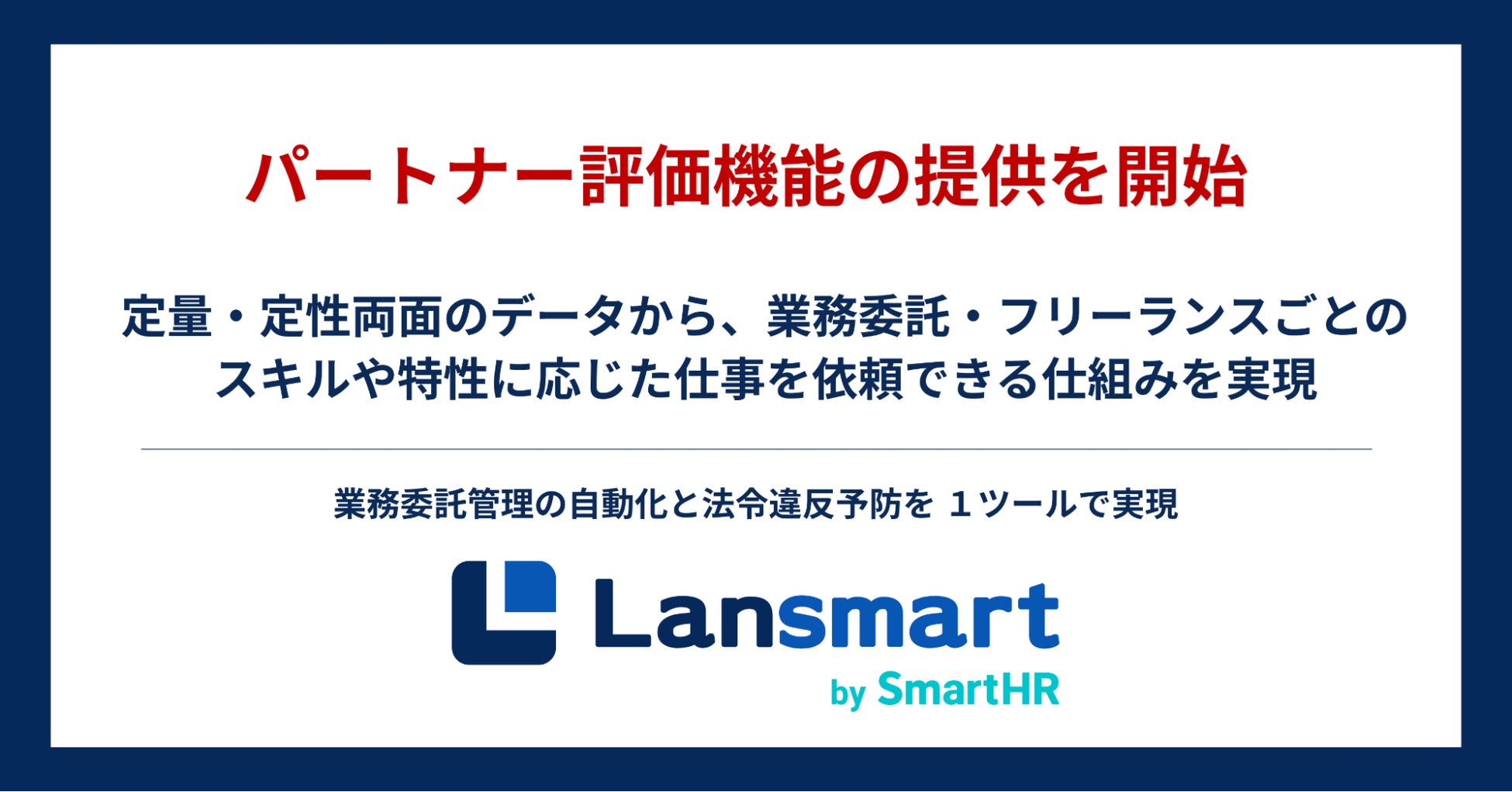 業務委託・フリーランス管理クラウド「Lansmart by SmartHR」、パートナー評価機能の提供を開始