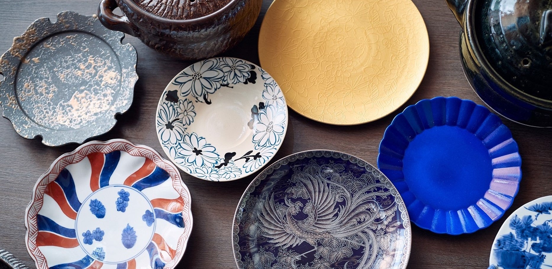 日本料理や鉄板焼きのコースで使用している器類は歴史ある器からオーダーメイドのオリジナル品まで。料理の盛り付けだけではなく装飾としても。