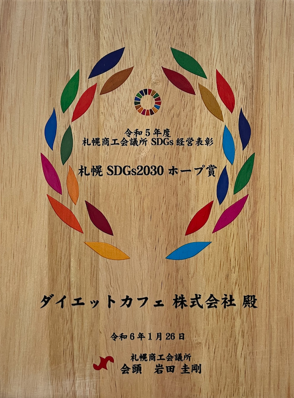 ダイエット商品口コミサイト「ダイエットカフェ」を運営するダイエットカフェ株式会社、札幌SDGs2030ホープ賞を受賞。