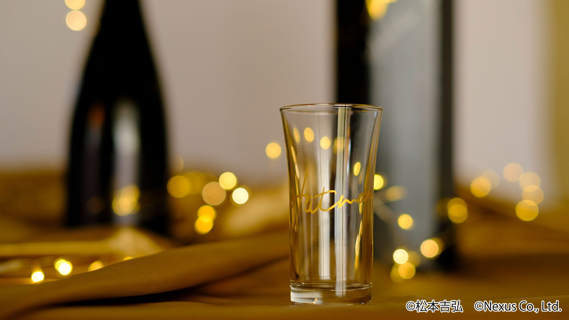 商品名である「Hitman」のロゴが印刷されている、日本酒を飲むのにちょうどよい大きさのグラスを先着100セット限定でご用意いたしました。