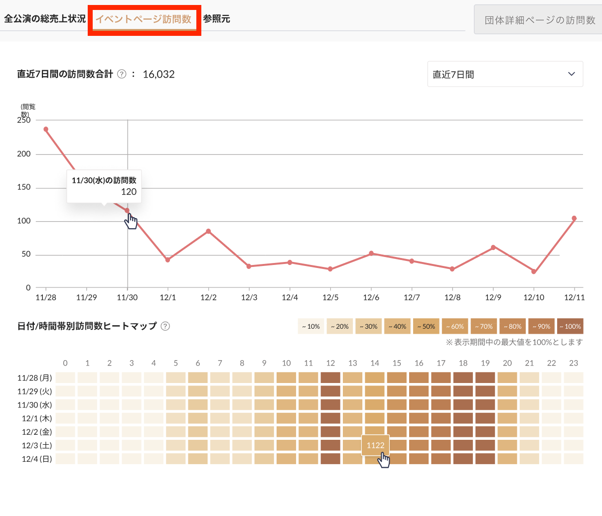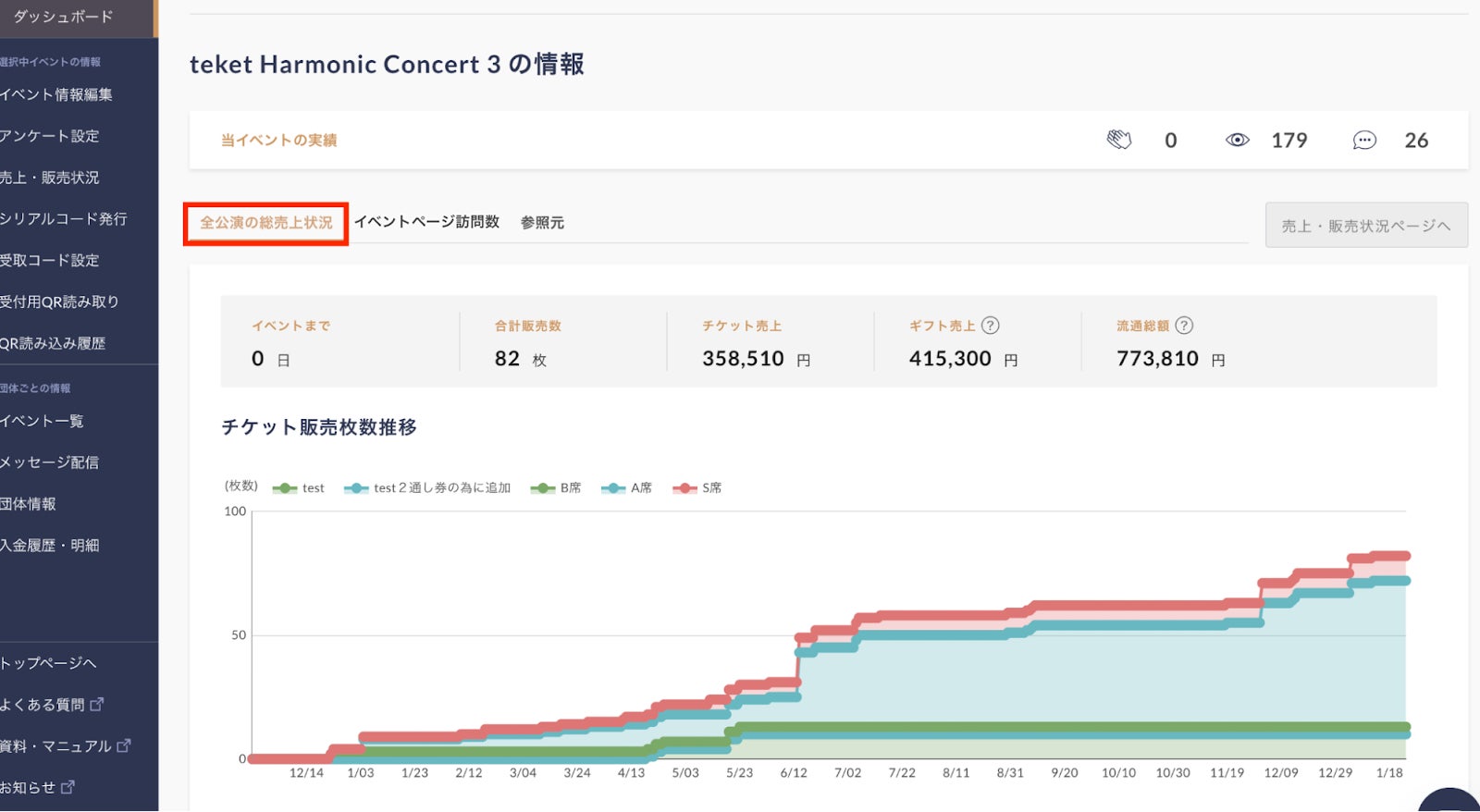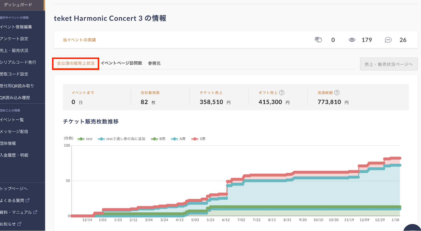今回の機能追加ではないですが、チケット販売枚数推移も分かりやすいと好評を博しています。