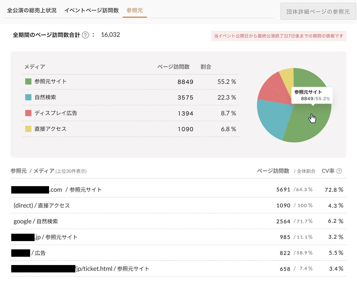 - どのサイトや検索エンジン、SNSからチケットが購入されているか