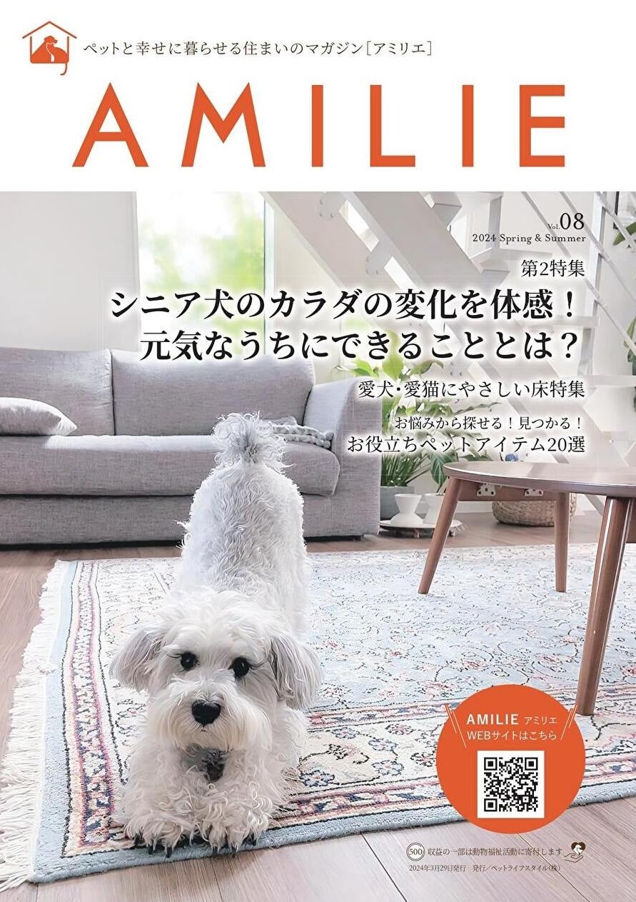 ペットとの住まい探訪記事やオススメアイテム、老犬・老描の介護、ペットとの幸せな暮らしのための情報誌AMILIEマガジンVol.08がデジタル版と併せて発刊!