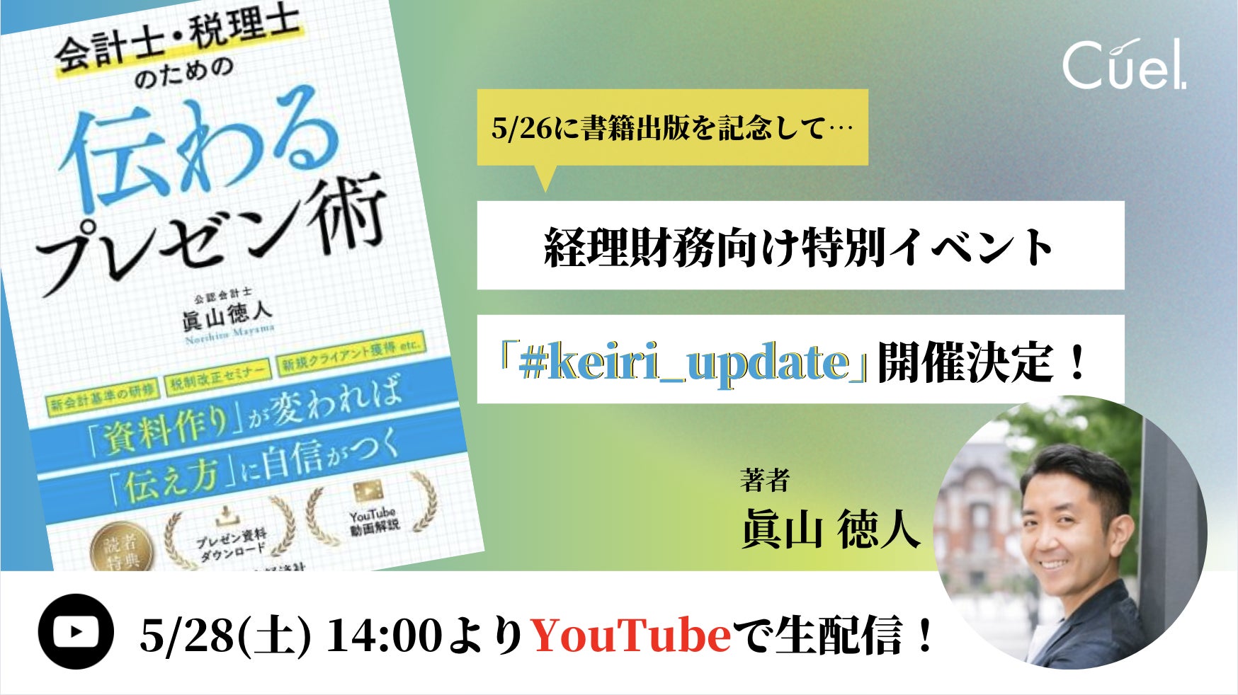 眞山氏の書籍出版を記念し、特別イベント「#keiri_update」を開催します。