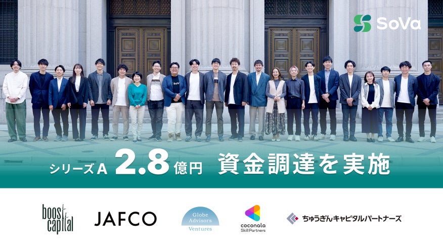 テクノロジーと専門家を掛け合わせた新しい形の会計事務所「SoVa」を運営する株式会社SoVa(本社:東京都中央区、代表取締役:山本健太郎、以下「当社」)は、2024年8月にシリーズAで、ブーストキャピタル株式会社、ジャフコ グループなどを引受先とする第三者割当増資を実施し、総額約2.8億円の資金調達を実施しましたのでお知らせいたします。