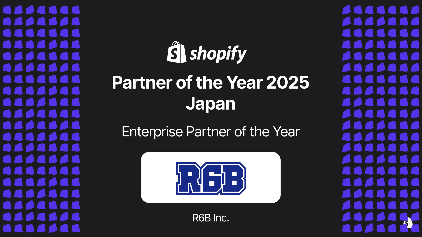 株式会社R6B(本社:東京都世田谷区)は、世界最大級のコマースプラットフォームを提供するShopify(ショッピファイ)の日本法人Shopify Japan株式会社(本社:東京都渋谷区、カントリーマネージャー:馬場道生、以下:Shopify Japan) による「Shopify Partner Award 2025 - Japan」において「Enterprise Partner of the Year 2025」を受賞し、R6Bとしては3年連続・4度目の受賞となりました。