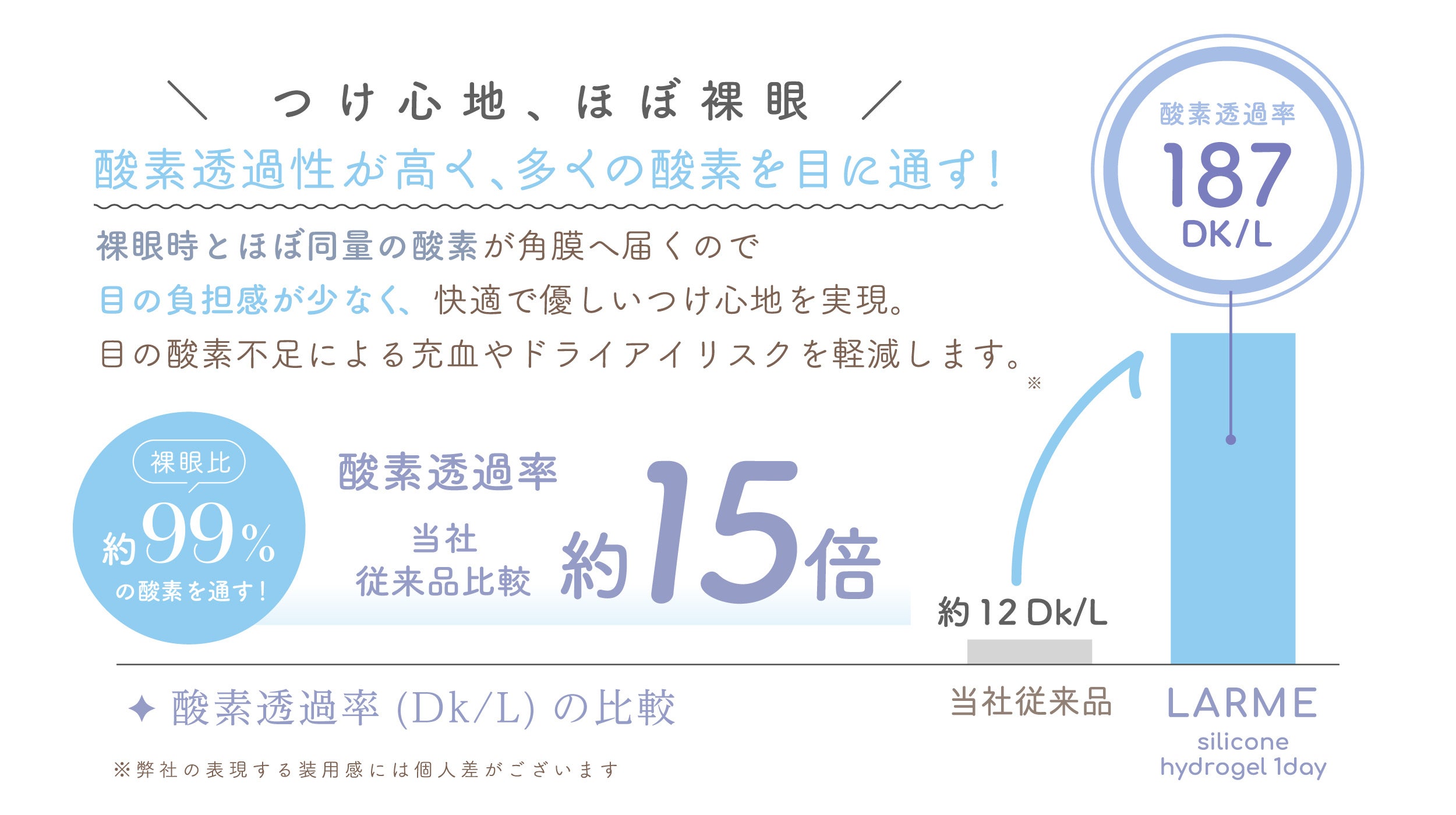 裸眼時とほぼ同量の酸素がたっぷり目に届くので、快適な装用感を実現します。
