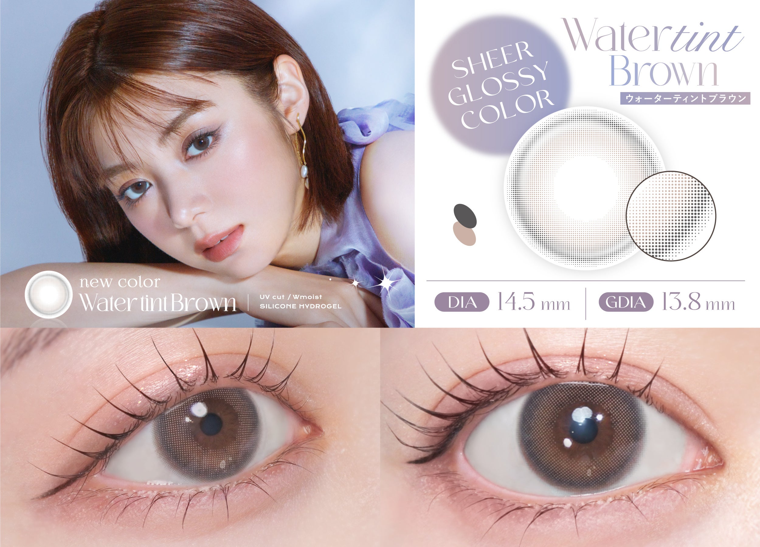 WATER TINT BROWN(ウォーターティントブラウン)DIA14.5mm/着色直径13.8mm/BC8.7