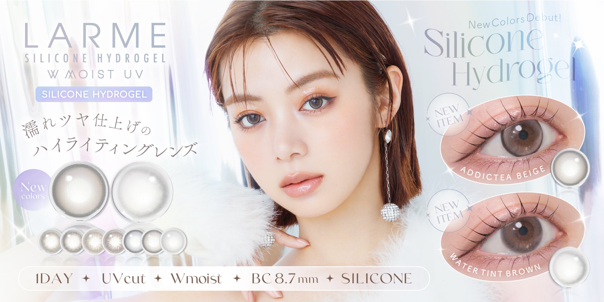 今回の新色も瞳に優しいシリコーンハイドロゲル素材を採用!