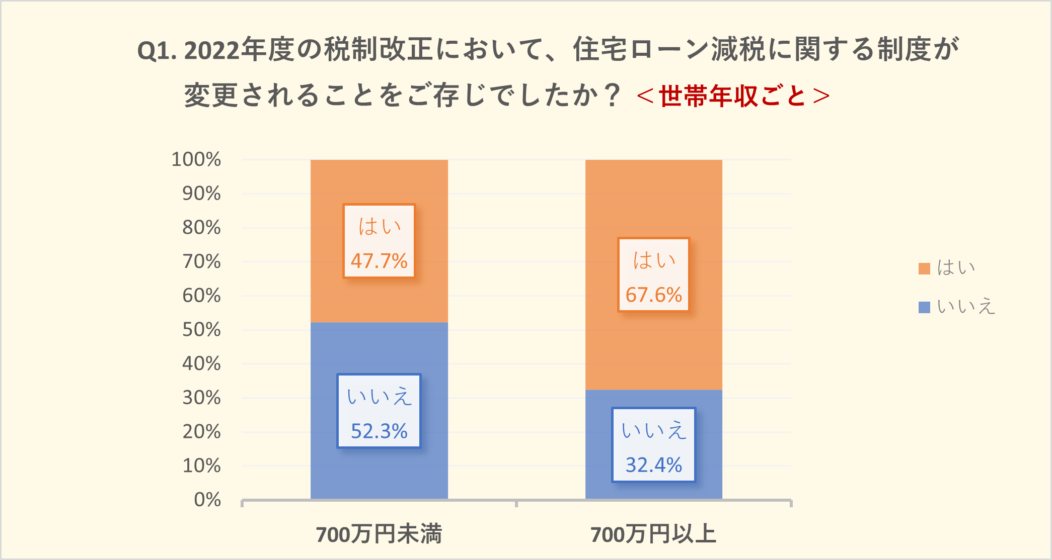 フリエ住まい総研「住宅ローン減税の税制改正」に関する実態調査|税制改正の認知度は約5割も、検討物件の価格帯によって大きな差