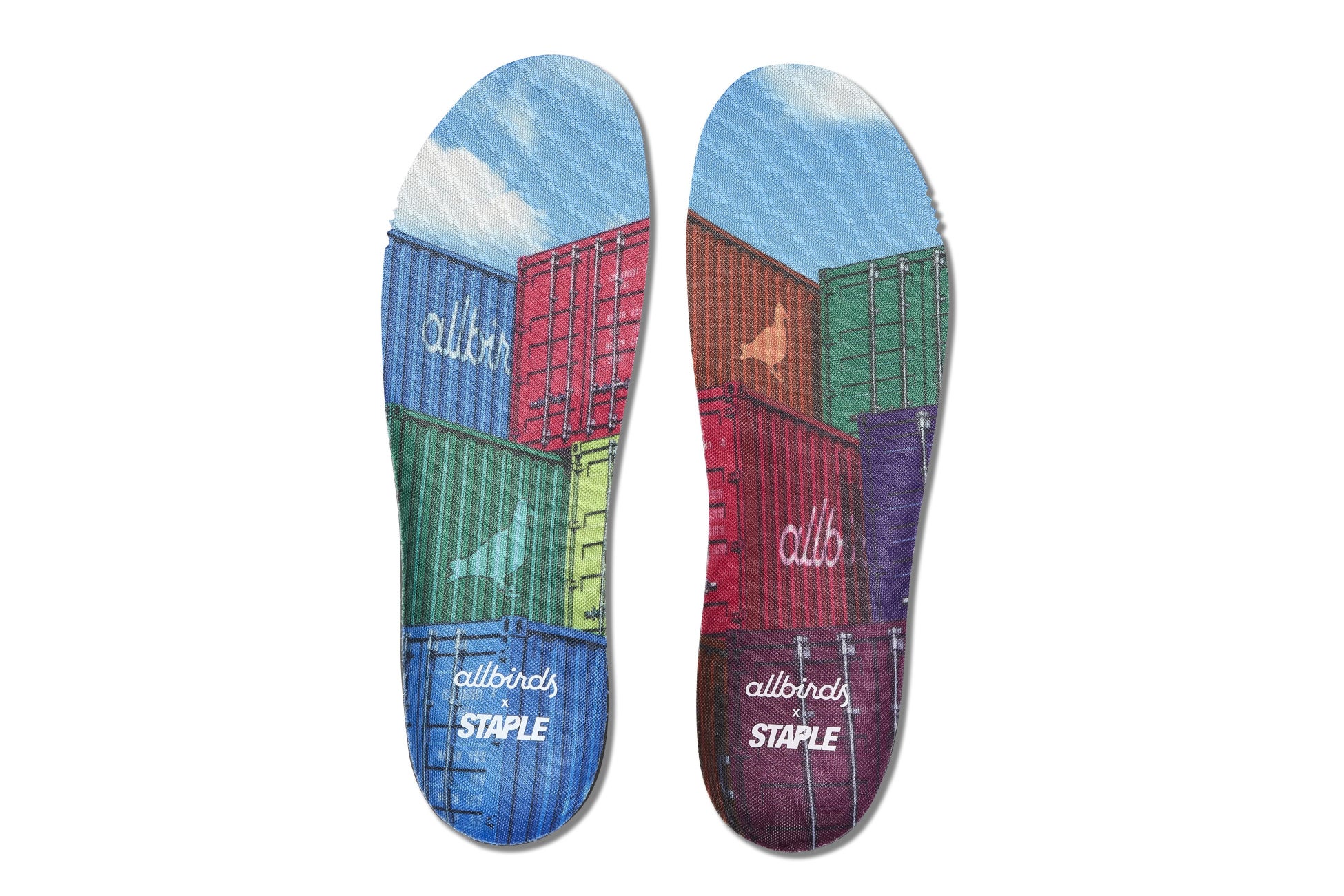 アッパーは裏返して素材や構造を露出し、「Allbirds」が製品に込めたイノベーションを披露。クリーニングタグやステッチもデザインの一部となり、「STAPLE Pigeon」のトレードマークである鳩の刺繍がアクセントに。そして「Allbirds」の全商品に記されたカーボンフットプリントをフィーチャーするという彼らしい手法が、このユニークな限定モデルのすべてを物語ります。