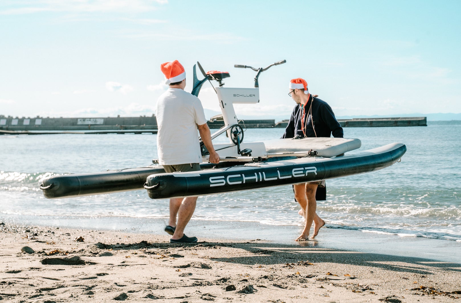 イベントは、TABISAUNAのリオさんがフローティングバイクに乗って海から登場するシーンでスタート。サンタ姿で現れた彼がプレゼントを手にすると、参加者たちは歓声を上げ、クリスマスの魔法を感じる瞬間となりました。