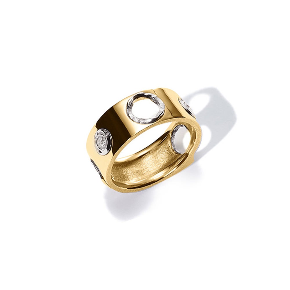 WGとYGの2種、ENオープン ダイヤモンド リングは、ミラモアのマスキュリンでフェミニンな美学を完璧に表現しています。 指先まで見える金継ぎの穴が特徴的なリングです。 両サイドにダイヤモンドをあしらったリングは、プラチナとYG を各8mmと5mmの2サイズ展開。 美しさと耐久性を兼ね備えたこのシグネチャー ピースは、まさに金継ぎの哲学を体現しています。